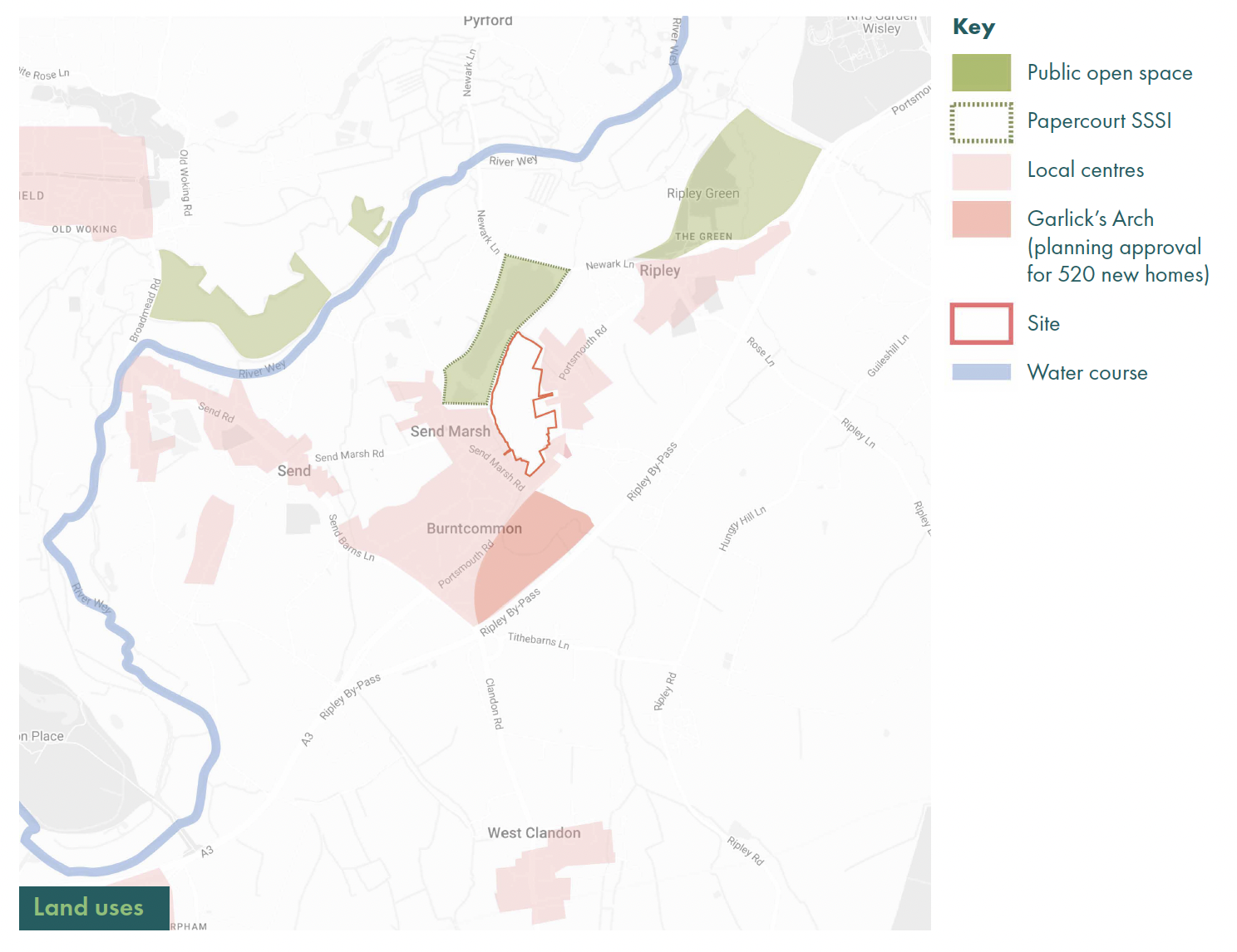 - Located to the north of Send Marsh village, within the Thames Basin Heath Special Protection Area (SPA).