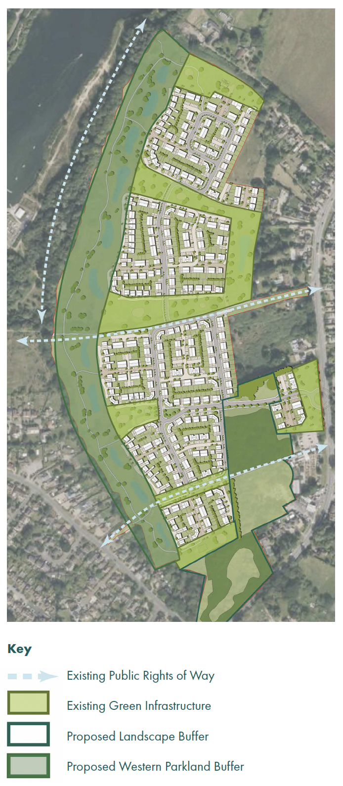 Our proposals incorporate a wide range of land uses and habitat types, including Public Amenity Space, Private Gardens, Public Parks, and Orchards.